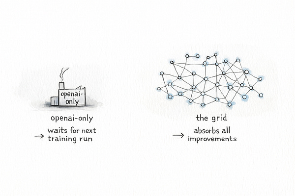The three-layer architecture that survives every model drop — and why OpenAI can't build it.