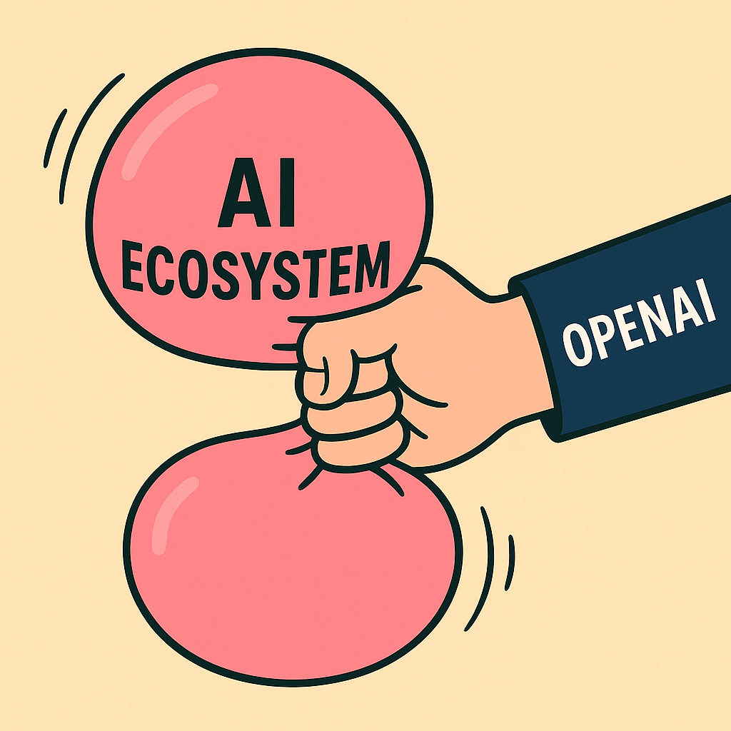 What you're witnessing isn't OpenAI's philosophical evolution. It's a textbook example of "squeezing the balloon" (read the book for more context!)—a calculated business move where you strategically commoditize one layer of your stack to protect and enlargen the layer that actually makes money.