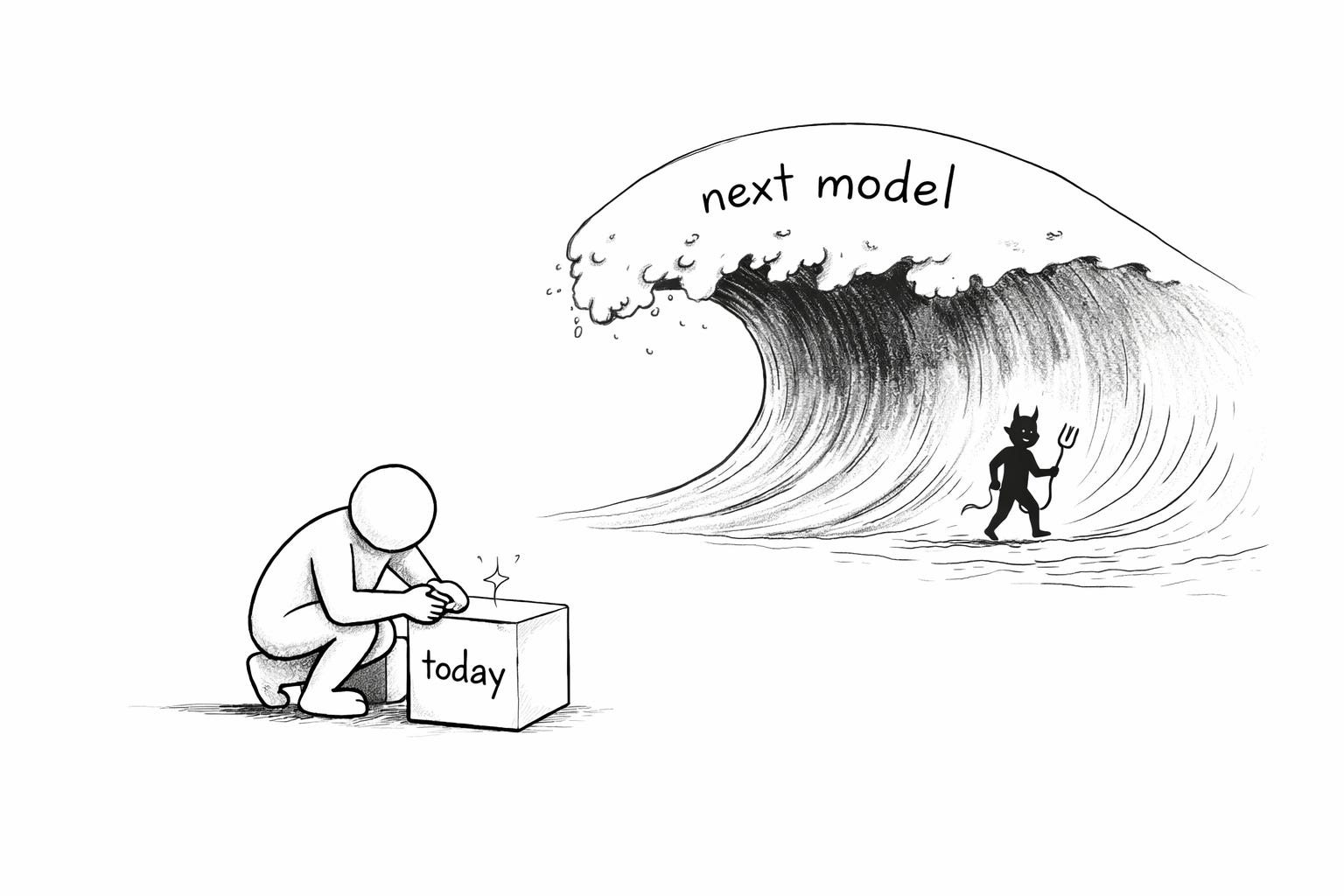 The team that ships the “worst” product today ships the best product in six months. Every engineering hour spent working around a constraint that dies in six months is negative value — not zero, negative.